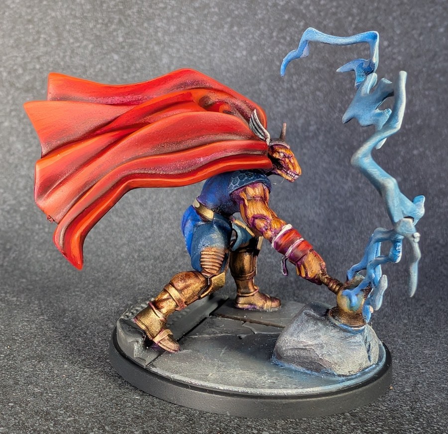 Just like the Alborc mini from earlier this month, the Evoker was given a purple and red underpainting, which you can see peeking out from the finished paint job.