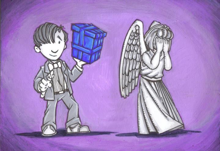 “Angel Gets a Blue Box,” acrylic
